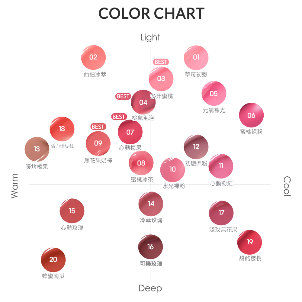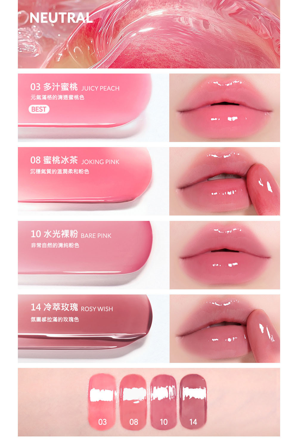 ▪️多色選擇:清透粉色、水光蜜桃、柔和玫瑰,冷調暖調皆齊全,自由搭配日常和約會妝容