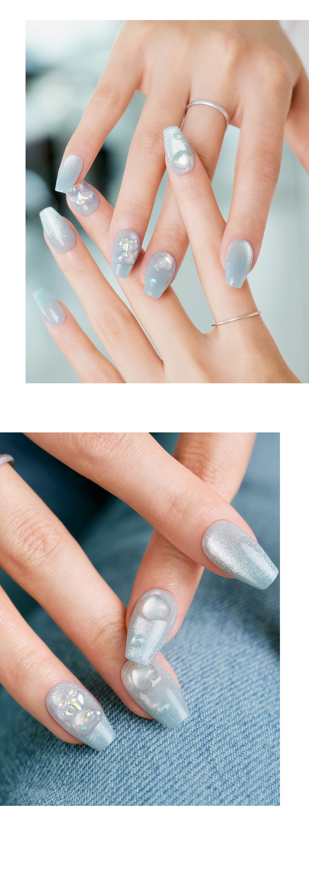 ▪️冰白色底色搭配細微閃光,如雪霧般輕柔,呈現清新指尖光澤。