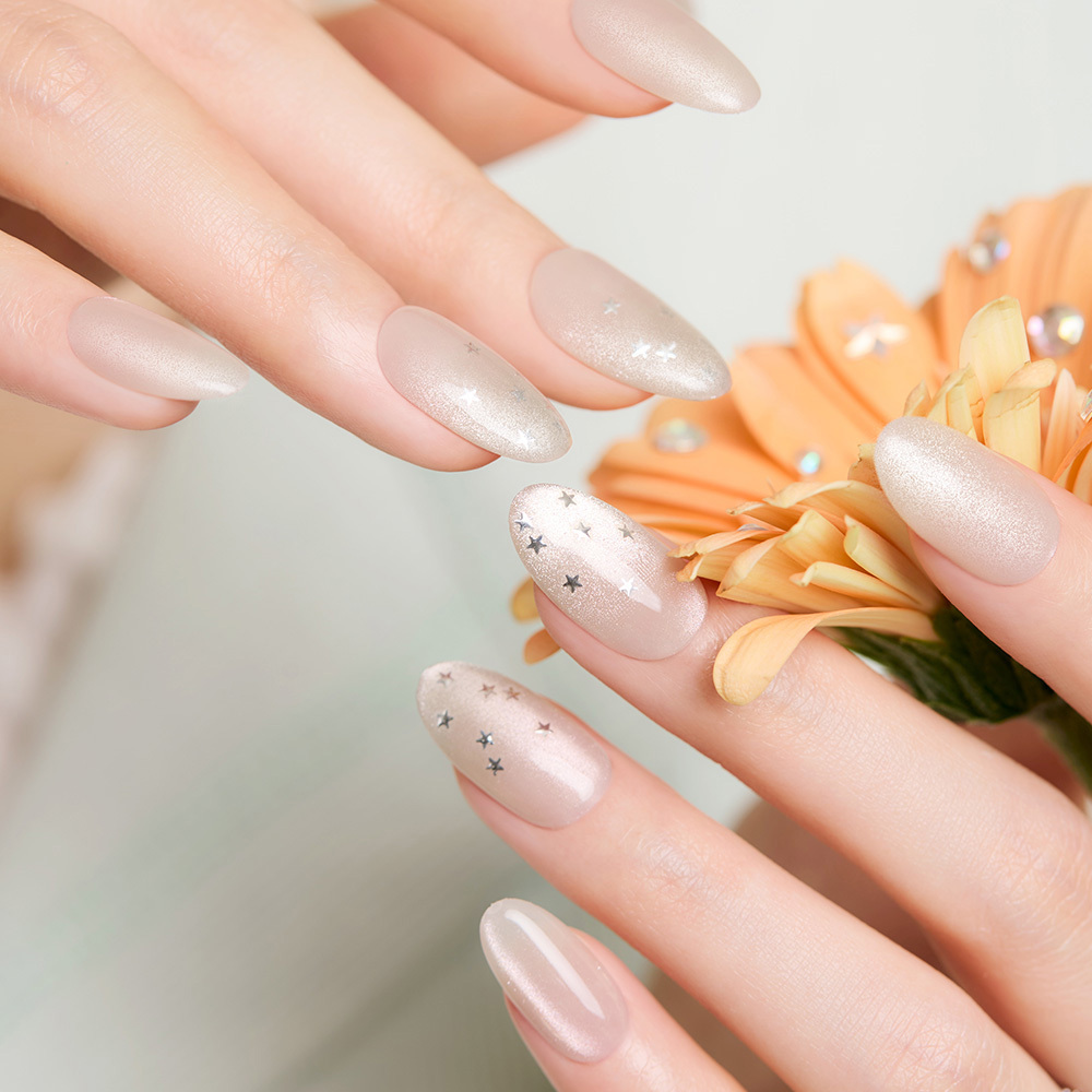 ▪️ 奶白色底搭配小巧星星點綴,打造清新甜美又帶微光的韓系指尖造型