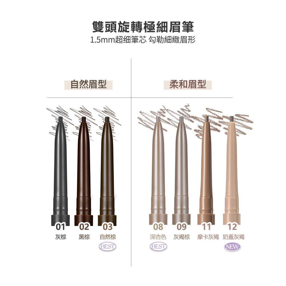 ▪️雙頭設計:一端極細筆芯、一端柔軟螺旋眉刷,描繪與整理一次完成